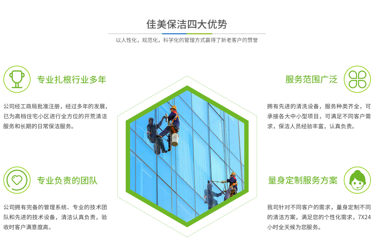 - 馬鞍山市佳美保潔服務有限公司是一家經(jīng)工商部門批準,具有法人資格專業(yè)清洗,馬鞍山保潔服務的公司,自創(chuàng)辦以來,一直致力于企業(yè),家庭,賓館,學校,別墅,酒店,商廈,公共設(shè)施等場所提供科學的日常保潔和清潔保護的服務公司,有著豐富的管理服務和保潔經(jīng)驗...